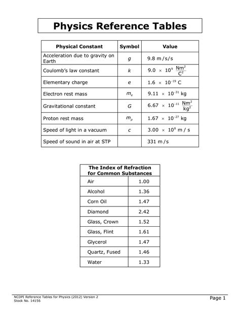 Download Physics Reference Table Workbook Answers PDF